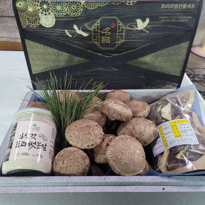 <상품 구성> 솔향고 버섯 1.3 kg + 건표고버섯 100 g + 표고 분말 100 g